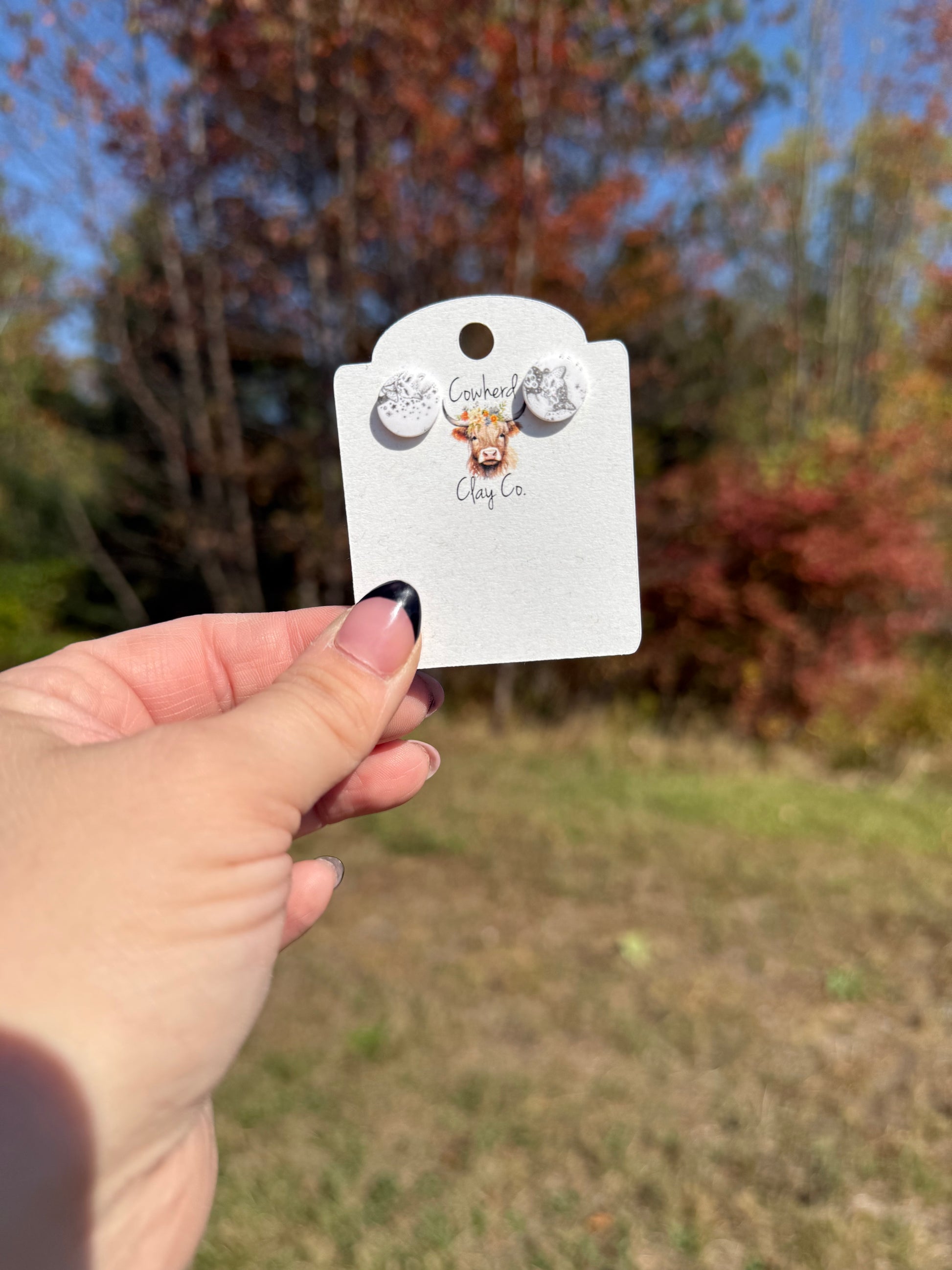 Gray printed celestial cat studs